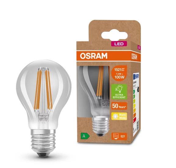 Osram LED Filament Classic A klar 300° 7,2-100W/830 warmweiß 1521lm E27 220-240V