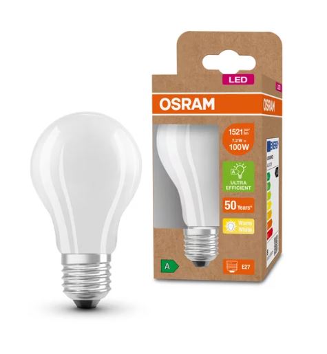 Osram LED Filament Classic A matt 300° Ultra-Efficient 7,2-100W/830 warmweiß 1521lm E27 220-240V