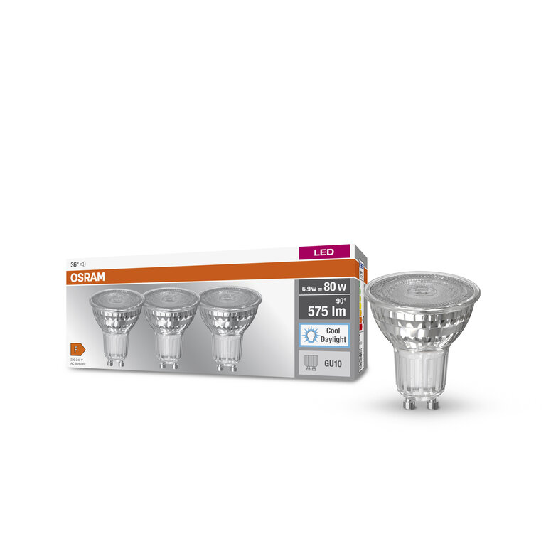 Osram / Ledvance LED Base Spot PAR16 36° 6,9-80W/865 tageslichtweiß 575lm GU10 220-240V 3er Pack