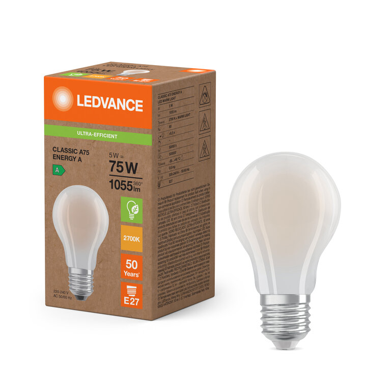 Osram / Ledvance LED Filament Classic A matt 300° Superior UltraEfficient 5-75W/827 warmweiß 1055lm E27 220-240V