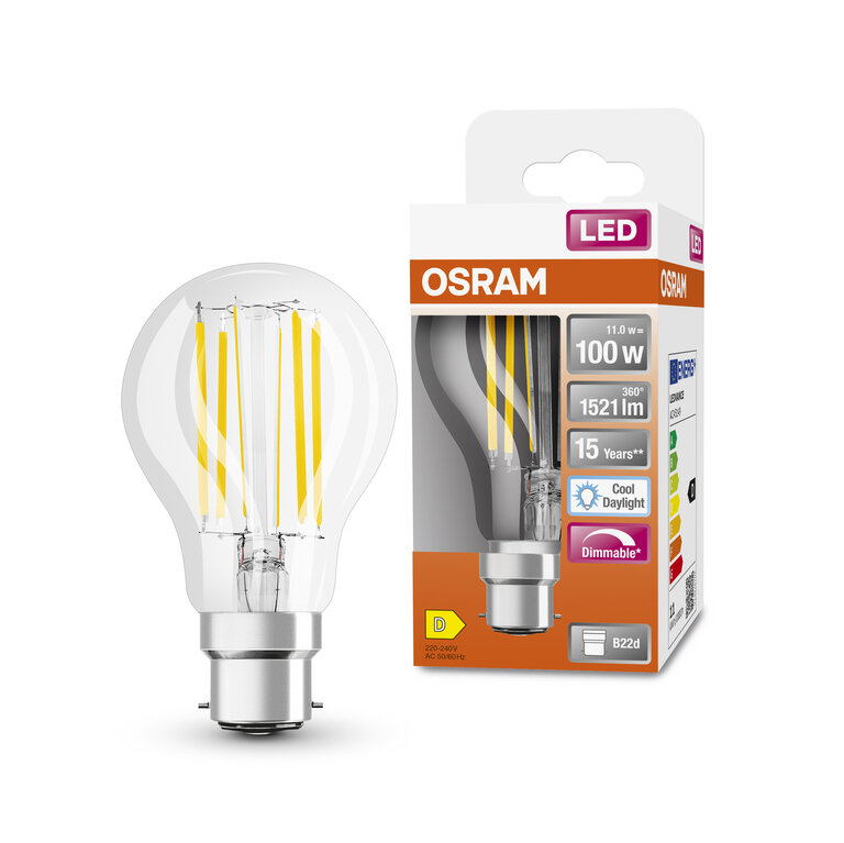 Osram / Ledvance LED Filament Superstar Classic A klar 300° 11-100W/865 tageslichtweiß 1521lm B22d 220-240V dimmbar