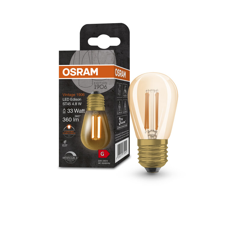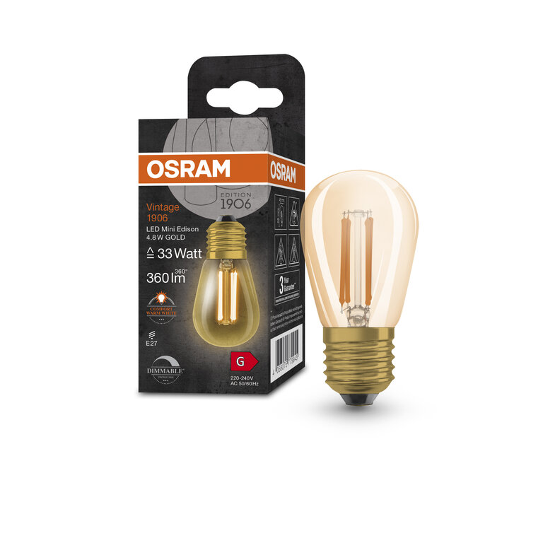 Osram / Ledvance LED Filament Vintage 1906 Mini Edison gold 320° 4,8-33W/822 extra warmweiß 360lm E27 220-240V dimmbar