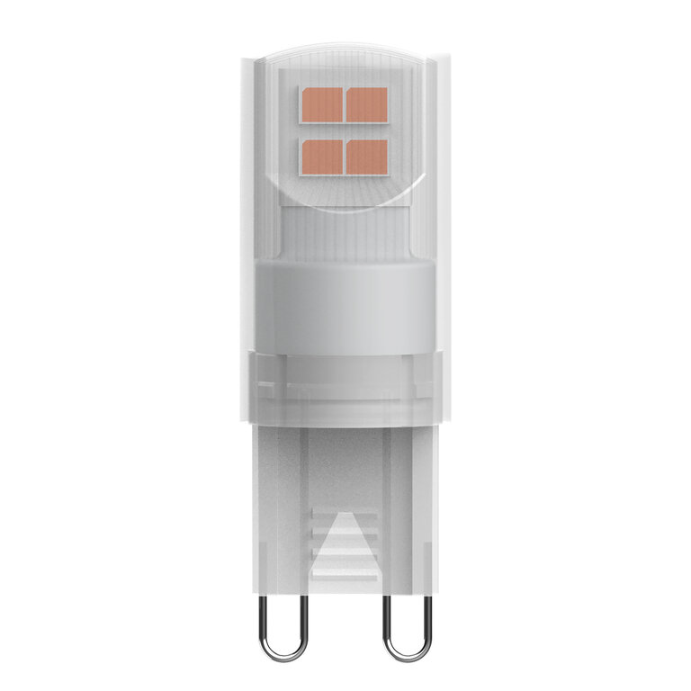 Eine G9-LED ist eine kleine, moderne Glühbirne mit einem G9-Sockel mit einer Länge von 9 mm zwischen den Stiften. Früher wurde dieser Sockel nur für Halogen-G9, sprich Hochvolt-Halogenlampen, verwendet, heute gibt es aber auch energiesparende LEDs.