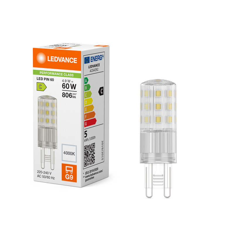 Osram / Ledvance LED Pin Micro klar 320° Performance 4,9-60W/840 kaltweiß 806lm G9 220-240V